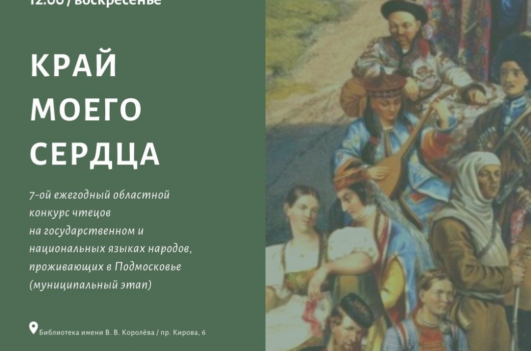 Приглашаем к участию в 7-м ежегодном областном конкурсе чтецов на государственном и национальных языках народов, проживающих в Подмосковье, «КРАЙ МОЕГО СЕРДЦА».
