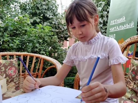 На занятии в летнем читальном зале мы научились выполнять упражнения для развития межполушарных связей. Выполнять их не так просто! Вы тоже можете проверить себя. Начать можно с обведения контуров простых симметричных рисунков. Желательно, чтобы изображение разделяла ось симметрии. Рисовать можно как красками, так и фломастерами, мягкими карандашами. Закрепите лист на столе или мольберте. В каждую руку возьмите по карандашу и поставьте их в верхнюю точку, затем начинайте вести их вниз по контуру рисунка. Следите, чтобы ведущая рука не обгоняла подчиненную. Суть упражнения именно в одновременности всех действий. Малыши могут рисовать пальчиками и ладошками. Нашим гостям задания очень понравились!