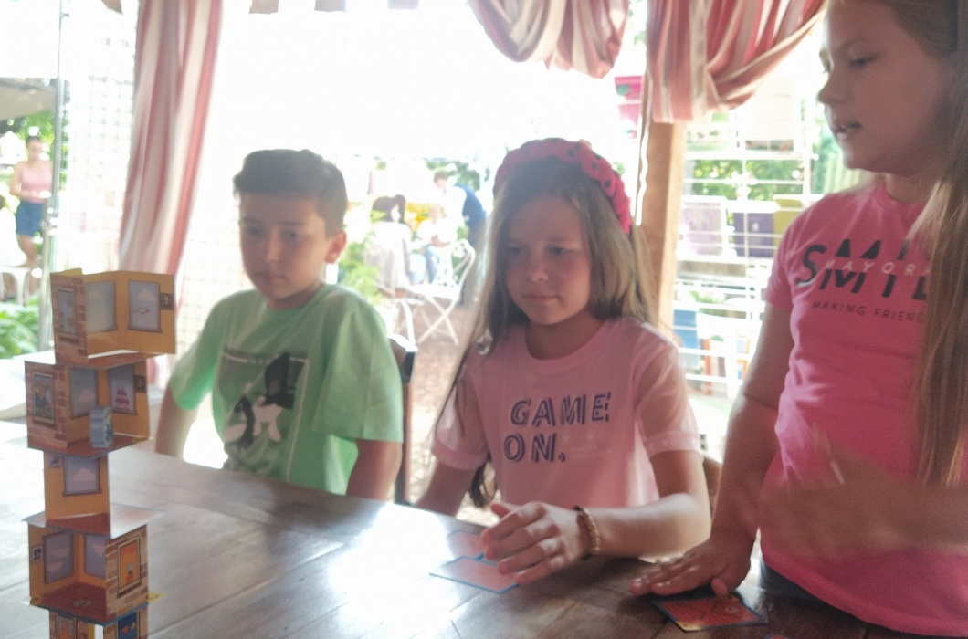 Мы с большим удовольствием предложили нашим читателям выбрать литературу по душе, а наши партнеры Hobby Games представили серию интерактивных игр. Посмеялись играя в "Барабашку" – быструю и весёлую игру на внимательность и реакцию. Померились интеллектом и кругозором в игре "Называтор Знаток" и научились строить многоэтажный дом в трехмерной настольной игре на координацию "Суперносорог".