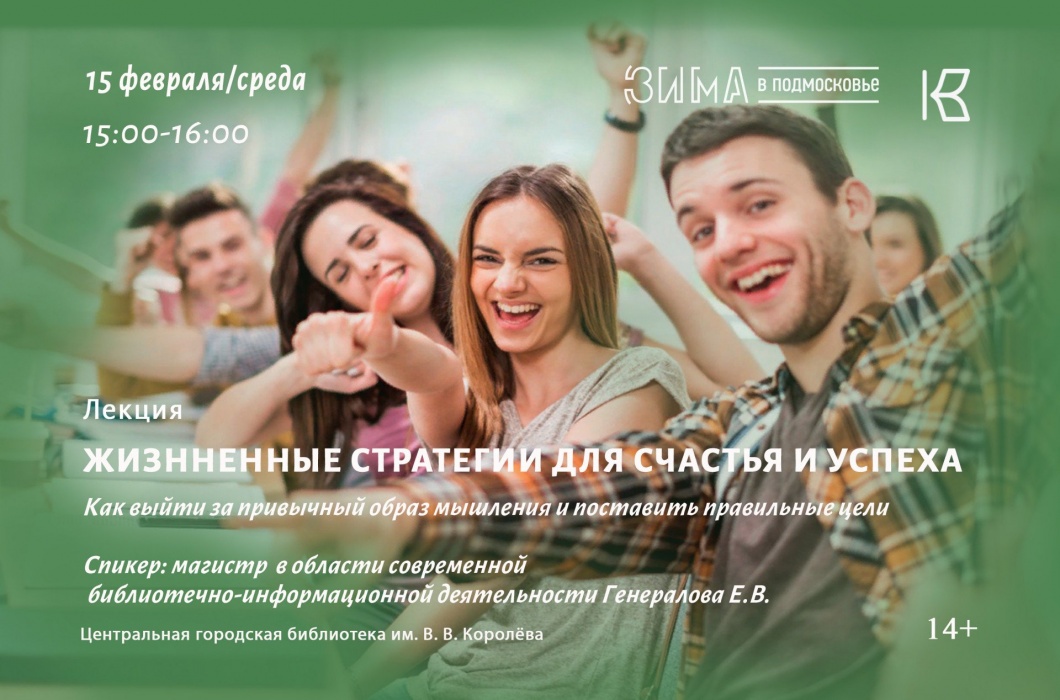 15 февраля в 15:00 в рамках молодёжного развивающего проекта «Без башни» состоится лекция «Жизненные стратегии для счастья и успеха».